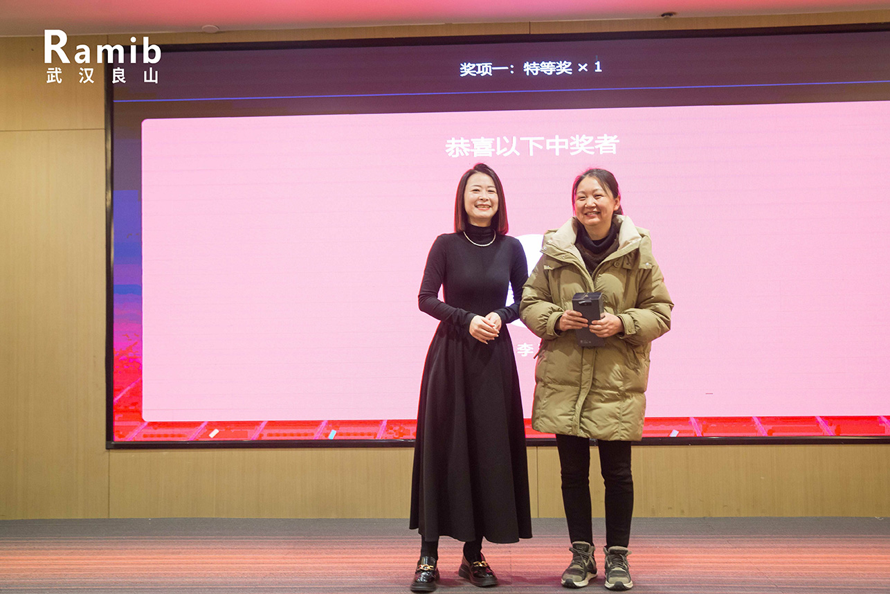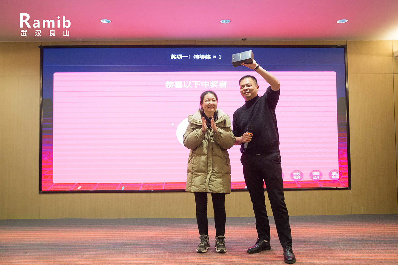 所有奖项抽出后,还有一项特等奖当场抽出,由武汉良山机电王总经理携手夫人,现场为幸运儿颁发特等奖。