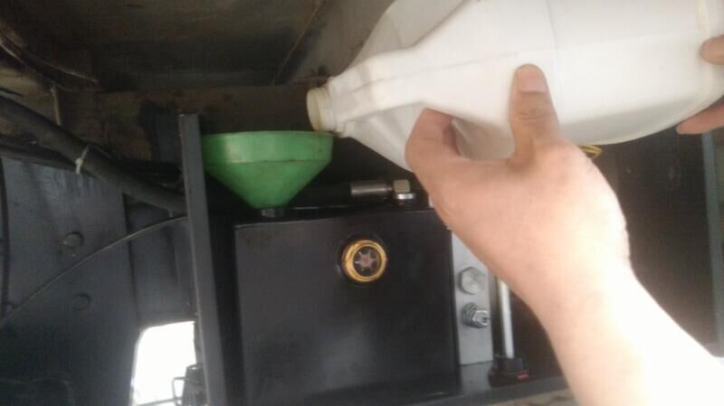 2.汽车尾板有5个油缸,油缸里面的液压油用的久了比较脏了,需要从动力单元的放油口处把旧油放出,再把新的液压有灌入即可。需要注意的是,更换液压油的时候一定要把尾板放在地上以免发生危险和液压油溢出(尾板一般是单作用缸,升起来后,油进入油缸内,这时候油箱是空的,加油会不知不觉得加多,等放下来的时候就会漫出来。)