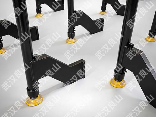 针对这一核心痛点,武汉市良山机电设备有限公司推出了自卸式支腿系统。该系统是一种便于装卸作业的支撑结构,通常与车辆、设备或集装箱等主体结合使用,通过液压、电机等方式实现支腿的升降或收缩,可以使车辆在无任何外部辅助机械的条件下,独立完成数吨乃至数十吨的重型设备的装卸、调平与稳固支撑,具有降低运输成本、提升特种设备自主保障能力的实际意义。